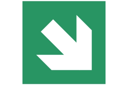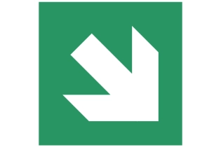 Sticker voor gebruik in trappenhuizen. 1x 45° pijl, draaibaar naar linksboven, linksonder, rechtsboven en rechtsonder. Inclusief sticker mannetje voor links of rechts.